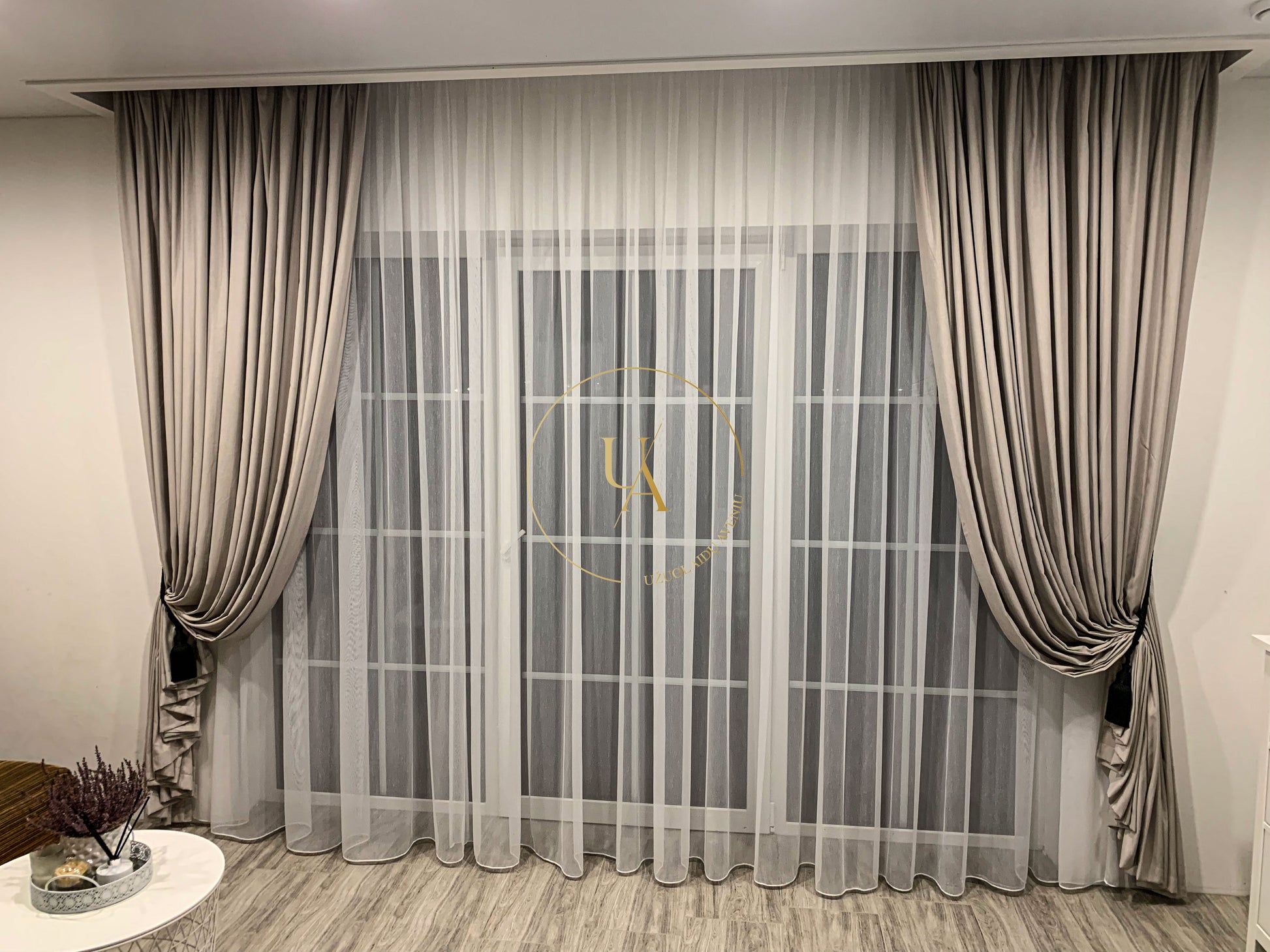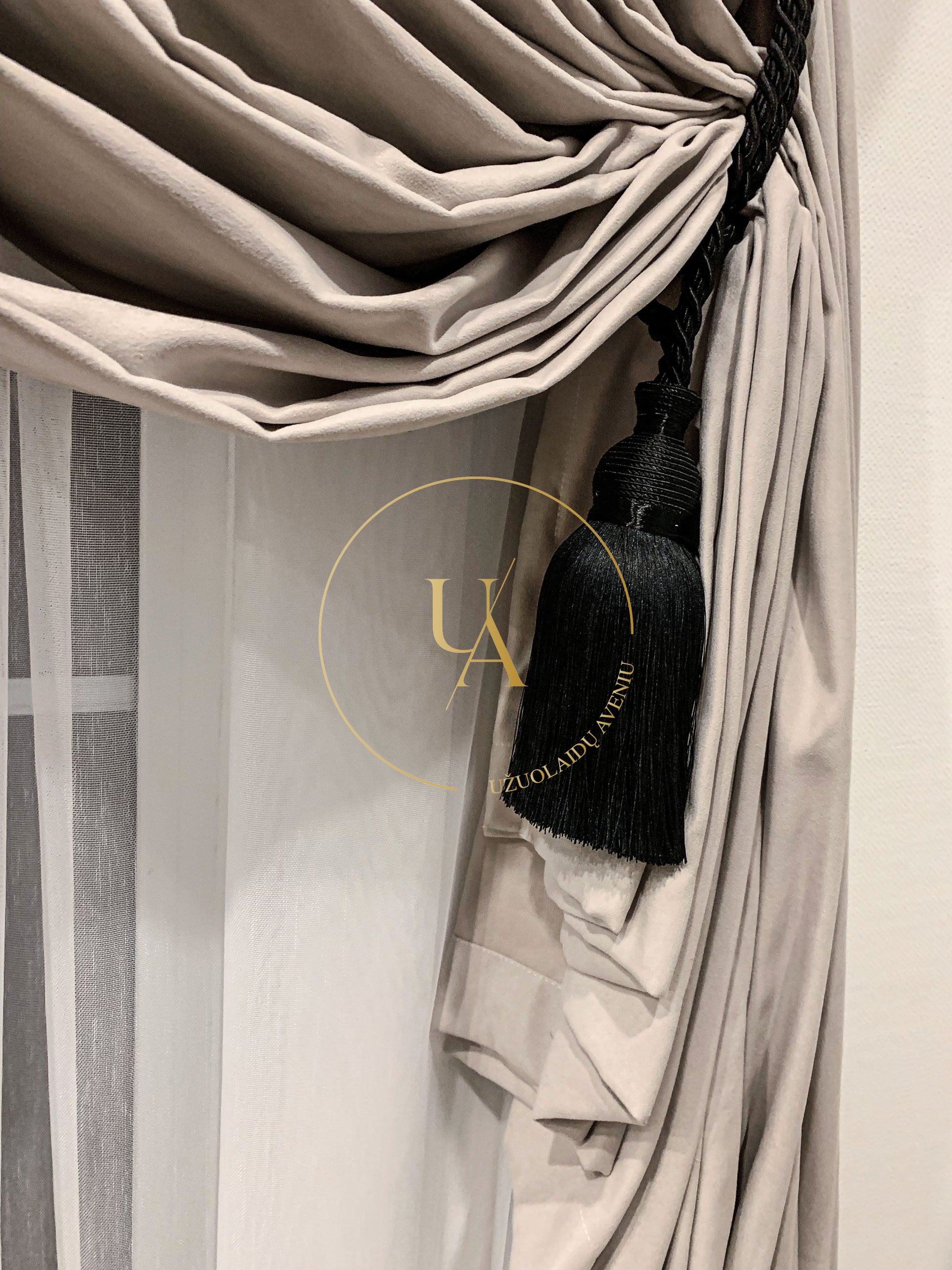 Užuolaidų iš šio audinio pasiuvimo kaina yra 7 € už vieną metrą (plotis). Į kainą įskaičiuoti kabliukai ir juostelė. Audinys bus išlygintas ir paruoštas pakabinimui.